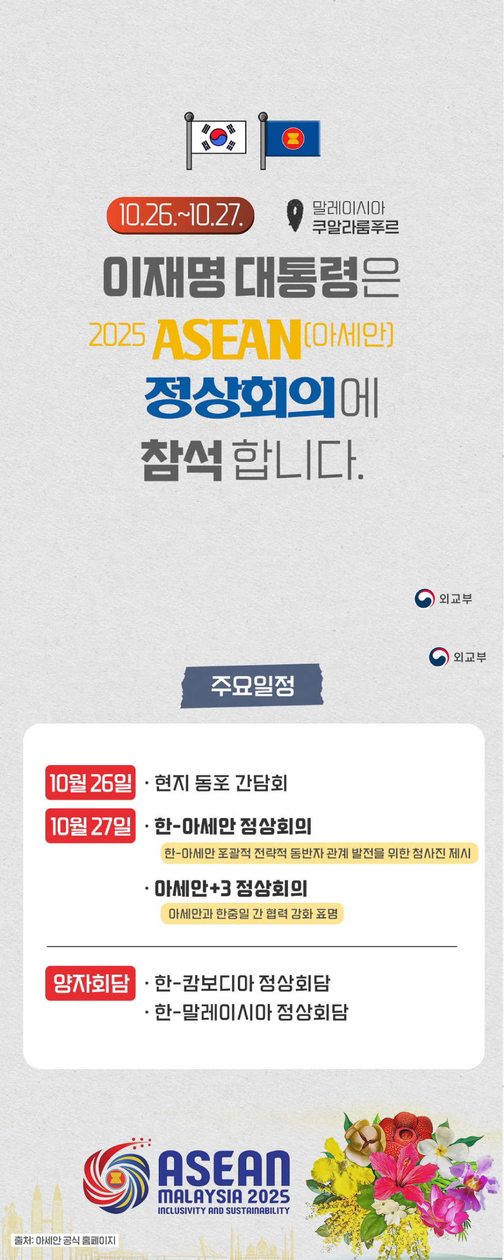 123-1 외교부-25-010 아세안 관련 정상회의 참석 및 한-아세안 협력 청사진 제시 - 아세안 중시 기조 하 신규 협력 수요를 반영한 ‘한-아세안 포괄적 전략동반자 관계(CSP)’ 발전 비전 제시